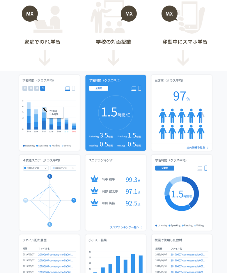 教室のPC学習も、スマホの学習も一元管理。